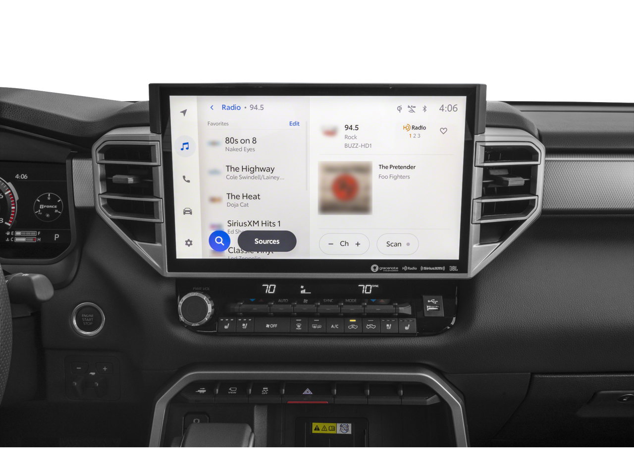 - Radio: Audio Plus -inc: 14" touchscreen, 9 speakers, Android Auto, Apple CarPlay and SiriusXM w/3-month Platinum Plan trial subscription, See toyota.com/audio-multimedia for details