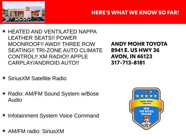 - HEATED AND VENTILATED NAPPA LEATHER SEATS!! POWER MOONROOF!! AWD!! THREE ROW SEATING!! TRI-ZONE AUTO CLIMATE CONTROL!! XM RADIO!! APPLE CARPLAY/ANDROID AUTO!!