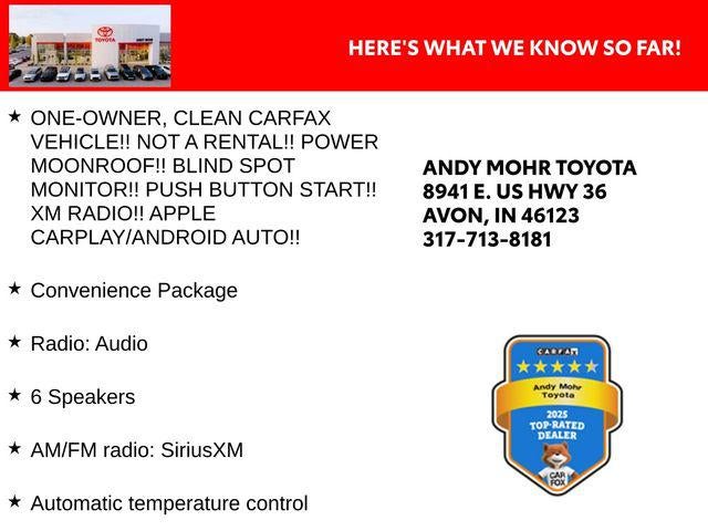 - ONE-OWNER, CLEAN CARFAX VEHICLE!! NOT A RENTAL!! POWER MOONROOF!! BLIND SPOT MONITOR!! PUSH BUTTON START!! XM RADIO!! APPLE CARPLAY/ANDROID AUTO!!